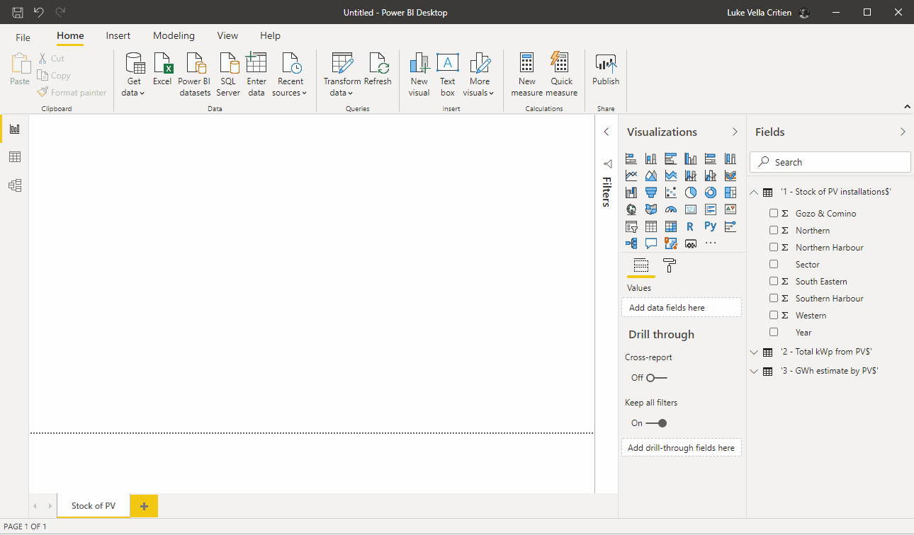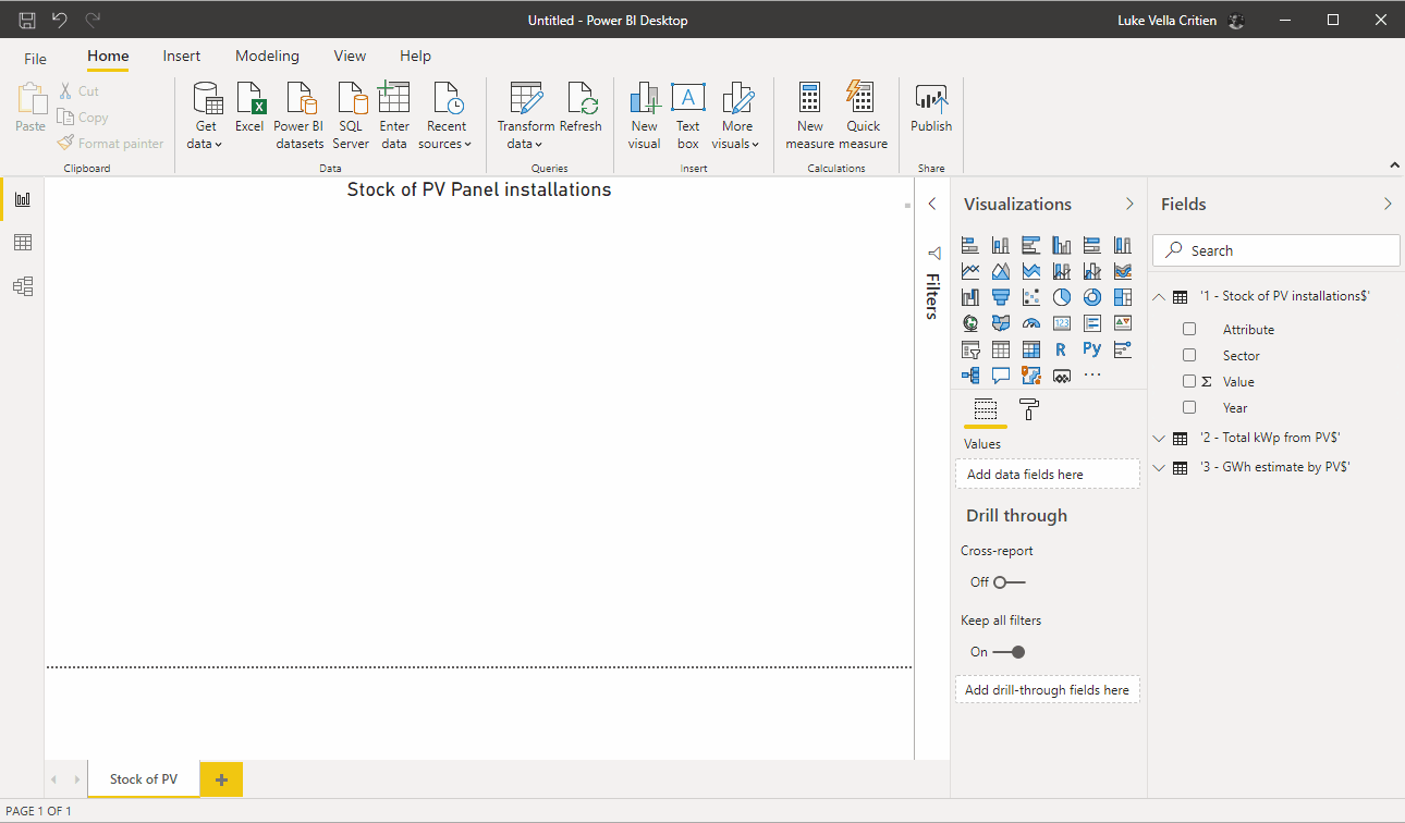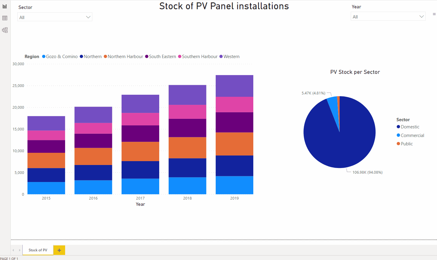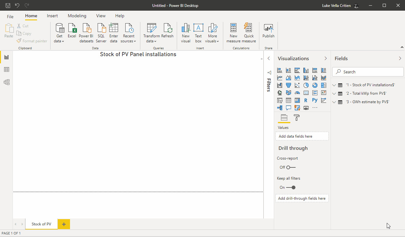 One of the most important things while compiling a Power BI report is to split information into different pages. This technique will make reports more readable and organised. This design option would be much better if suitable names are given to the respective pages. In the below we are renaming Page 1 to Sock of PV.