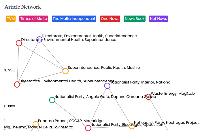 LobesLab News gathers daily news articles from prominent Maltese news publishers. It applies NLP (natural language processing) to them, and creates a graph map linking similar articles together.